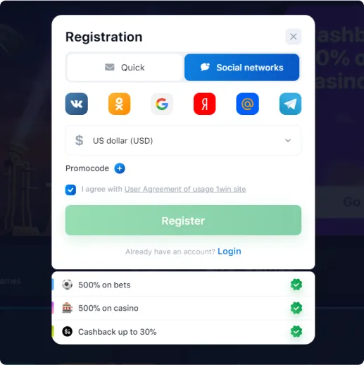 После того как мы определились с надежным букмекером 1win, следует пройти регистрацию. Ниже есть ссылка, переходим по ней, выбираем удобный нам метод. Их всего 3.